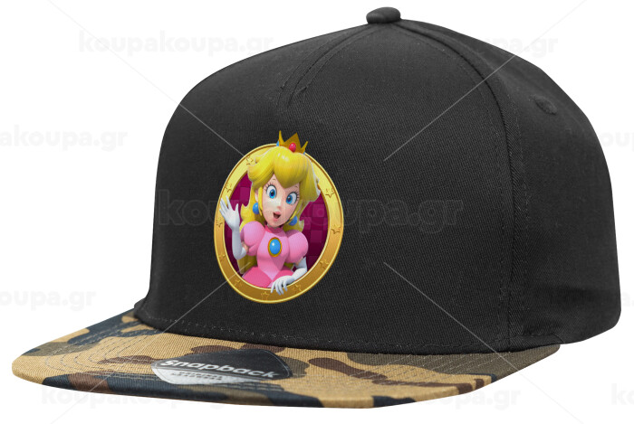 Princess Peach Toadstool, Καπέλο Ενηλίκων Flat Snapback Μαύρο/Παραλλαγή, (100% ΒΑΜΒΑΚΕΡΟ TWILL, ΕΝΗΛΙΚΩΝ, UNISEX, ONE SIZE)