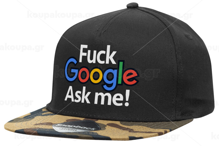 Fuck Google, Ask me!, Καπέλο Ενηλίκων Flat Snapback Μαύρο/Παραλλαγή, (100% ΒΑΜΒΑΚΕΡΟ TWILL, ΕΝΗΛΙΚΩΝ, UNISEX, ONE SIZE)