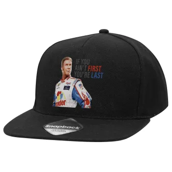 If You Ain't First You're Last Ricky Bobby, Talladega Nights, Καπέλο Ενηλίκων Flat Snapback Μαύρο, (100% ΒΑΜΒΑΚΕΡΟ TWILL, ΕΝΗΛΙΚΩΝ, UNISEX, ONE SIZE)