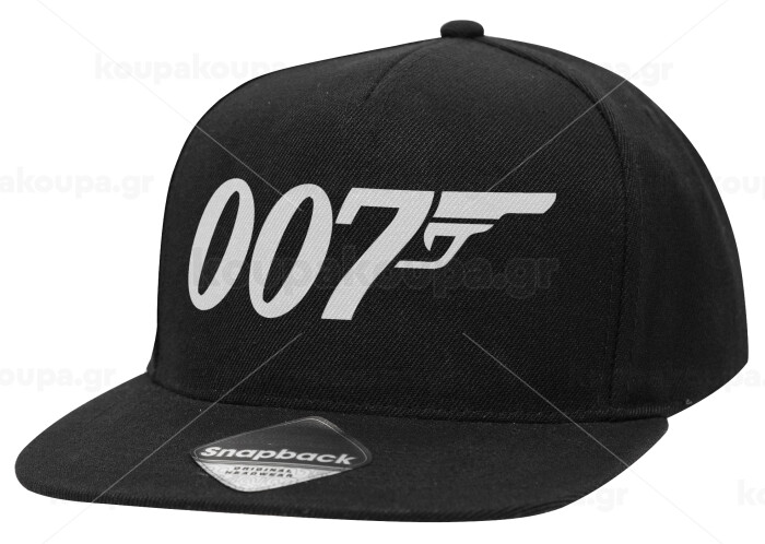 James Bond 007, Καπέλο Ενηλίκων Flat Snapback Μαύρο, (100% ΒΑΜΒΑΚΕΡΟ TWILL, ΕΝΗΛΙΚΩΝ, UNISEX, ONE SIZE)