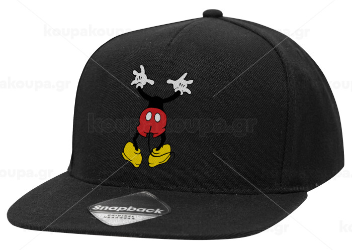 Mickey hide..., Καπέλο Ενηλίκων Flat Snapback Μαύρο, (100% ΒΑΜΒΑΚΕΡΟ TWILL, ΕΝΗΛΙΚΩΝ, UNISEX, ONE SIZE)