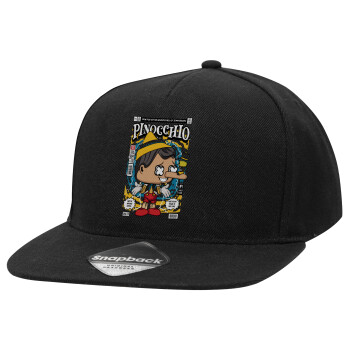 Pinocchio, Καπέλο Ενηλίκων Flat Snapback Μαύρο, (100% ΒΑΜΒΑΚΕΡΟ TWILL, ΕΝΗΛΙΚΩΝ, UNISEX, ONE SIZE)
