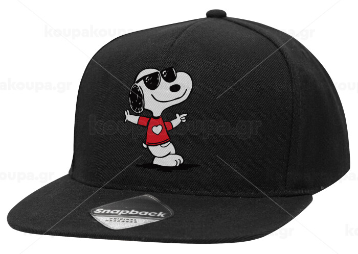 Snoopy καρδούλα, Καπέλο Ενηλίκων Flat Snapback Μαύρο, (100% ΒΑΜΒΑΚΕΡΟ TWILL, ΕΝΗΛΙΚΩΝ, UNISEX, ONE SIZE)