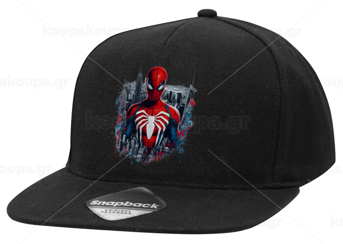 Spiderman City, Καπέλο Ενηλίκων Flat Snapback Μαύρο, (100% ΒΑΜΒΑΚΕΡΟ TWILL, ΕΝΗΛΙΚΩΝ, UNISEX, ONE SIZE)