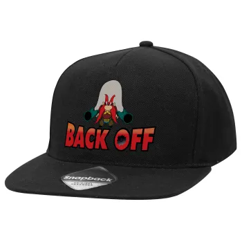 Yosemite Sam Back OFF, Καπέλο Ενηλίκων Flat Snapback Μαύρο, (100% ΒΑΜΒΑΚΕΡΟ TWILL, ΕΝΗΛΙΚΩΝ, UNISEX, ONE SIZE)