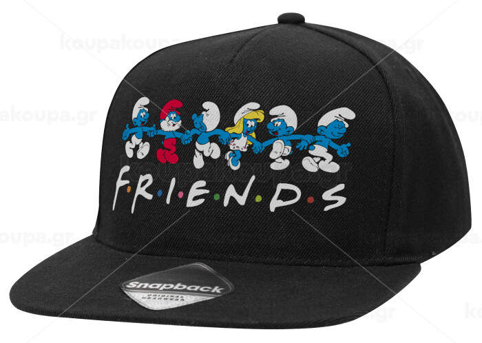 Friends Smurfs, Καπέλο Ενηλίκων Flat Snapback Μαύρο, (100% ΒΑΜΒΑΚΕΡΟ TWILL, ΕΝΗΛΙΚΩΝ, UNISEX, ONE SIZE)
