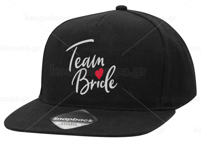 Team Bride red heart, Καπέλο Ενηλίκων Flat Snapback Μαύρο, (100% ΒΑΜΒΑΚΕΡΟ TWILL, ΕΝΗΛΙΚΩΝ, UNISEX, ONE SIZE)