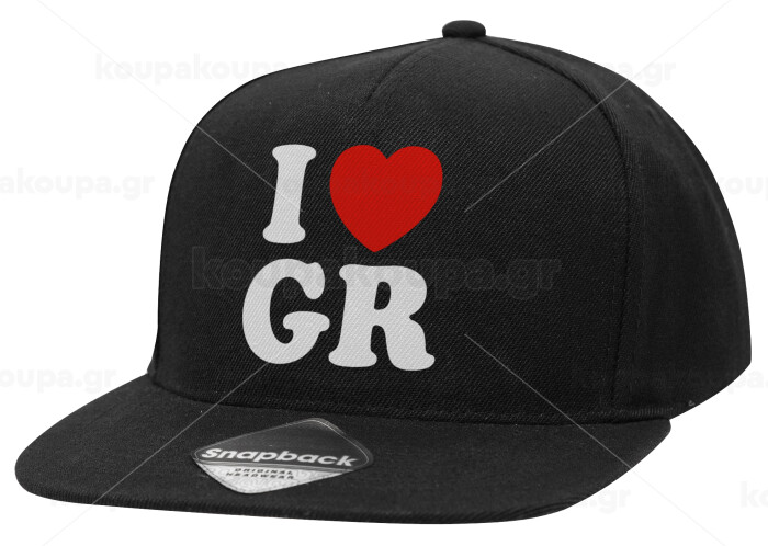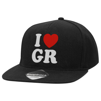 I Love GR, Καπέλο Ενηλίκων Flat Snapback Μαύρο, (100% ΒΑΜΒΑΚΕΡΟ TWILL, ΕΝΗΛΙΚΩΝ, UNISEX, ONE SIZE)