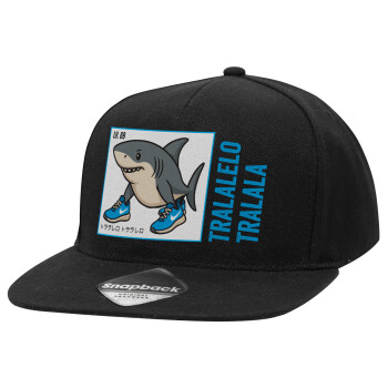 Tralalero Tralala, Καπέλο Ενηλίκων Flat Snapback Μαύρο, (100% ΒΑΜΒΑΚΕΡΟ TWILL, ΕΝΗΛΙΚΩΝ, UNISEX, ONE SIZE)