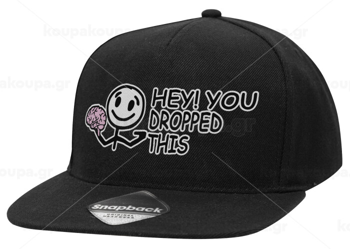 Hey! You dropped this, Καπέλο Ενηλίκων Flat Snapback Μαύρο, (100% ΒΑΜΒΑΚΕΡΟ TWILL, ΕΝΗΛΙΚΩΝ, UNISEX, ONE SIZE)
