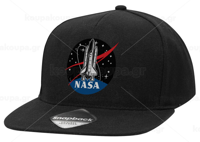 NASA Badge, Καπέλο Ενηλίκων Flat Snapback Μαύρο, (100% ΒΑΜΒΑΚΕΡΟ TWILL, ΕΝΗΛΙΚΩΝ, UNISEX, ONE SIZE)