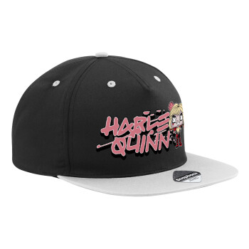 Harley Quinn (Χάρλεϊ Κουίν), Καπέλο Ενηλίκων Flat Snapback Μαύρο/Γκρι, (100% ΒΑΜΒΑΚΕΡΟ TWILL, ΕΝΗΛΙΚΩΝ, UNISEX, ONE SIZE)