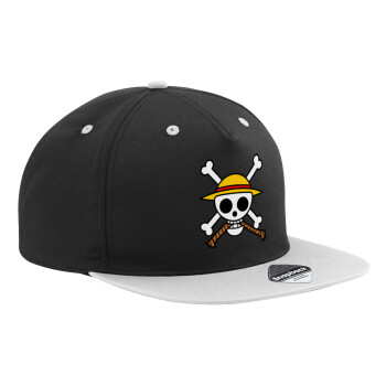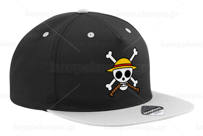 Onepiece skull, Καπέλο Ενηλίκων Flat Snapback Μαύρο/Γκρι, (100% ΒΑΜΒΑΚΕΡΟ TWILL, ΕΝΗΛΙΚΩΝ, UNISEX, ONE SIZE)