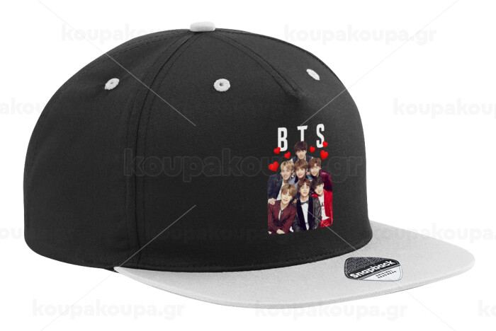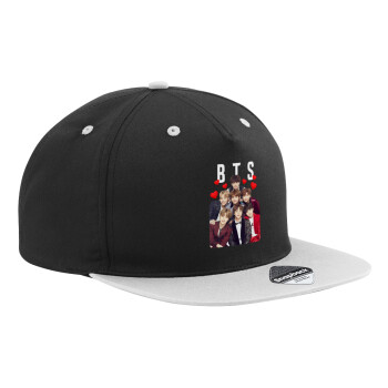 BTS hearts, Καπέλο Ενηλίκων Flat Snapback Μαύρο/Γκρι, (100% ΒΑΜΒΑΚΕΡΟ TWILL, ΕΝΗΛΙΚΩΝ, UNISEX, ONE SIZE)
