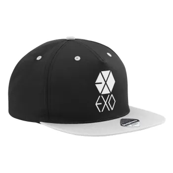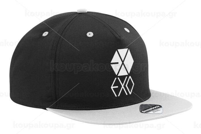 EXO Band korea, Καπέλο Ενηλίκων Flat Snapback Μαύρο/Γκρι, (100% ΒΑΜΒΑΚΕΡΟ TWILL, ΕΝΗΛΙΚΩΝ, UNISEX, ONE SIZE)