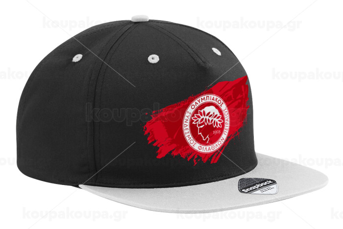Olympiacos F.C., Καπέλο Ενηλίκων Flat Snapback Μαύρο/Γκρι, (100% ΒΑΜΒΑΚΕΡΟ TWILL, ΕΝΗΛΙΚΩΝ, UNISEX, ONE SIZE)