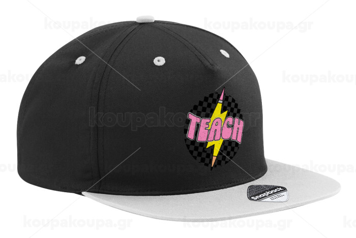 Teach, Καπέλο Ενηλίκων Flat Snapback Μαύρο/Γκρι, (100% ΒΑΜΒΑΚΕΡΟ TWILL, ΕΝΗΛΙΚΩΝ, UNISEX, ONE SIZE)