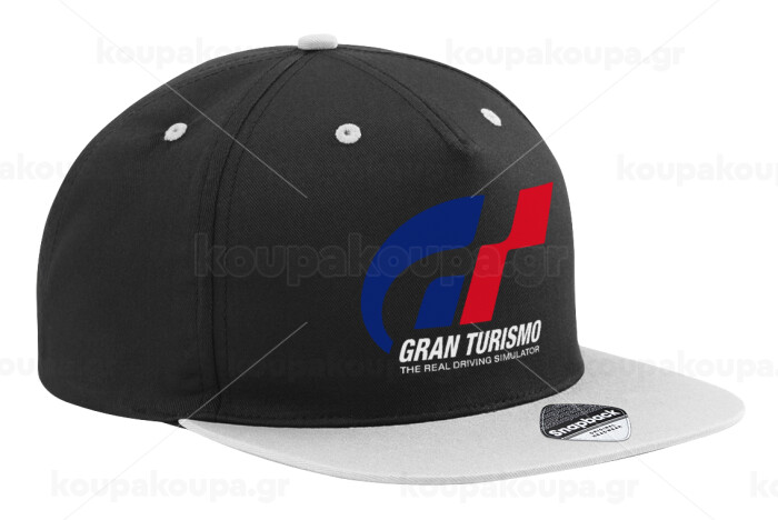 gran turismo, Καπέλο Ενηλίκων Flat Snapback Μαύρο/Γκρι, (100% ΒΑΜΒΑΚΕΡΟ TWILL, ΕΝΗΛΙΚΩΝ, UNISEX, ONE SIZE)