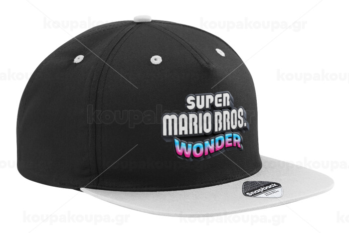 Super mario wonder, Καπέλο Ενηλίκων Flat Snapback Μαύρο/Γκρι, (100% ΒΑΜΒΑΚΕΡΟ TWILL, ΕΝΗΛΙΚΩΝ, UNISEX, ONE SIZE)