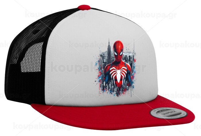 Spiderman City, Καπέλο Ενηλίκων Foam Flat Snapback με Δίχτυ Κόκκινο-Λευκό-Μαύρο (POLYESTER, ΕΝΗΛΙΚΩΝ, UNISEX, ONE SIZE)