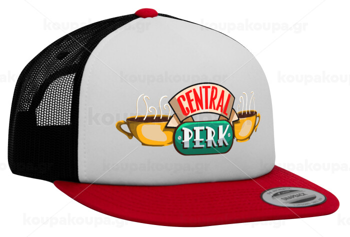 Central perk, Καπέλο Ενηλίκων Foam Flat Snapback με Δίχτυ Κόκκινο-Λευκό-Μαύρο (POLYESTER, ΕΝΗΛΙΚΩΝ, UNISEX, ONE SIZE)