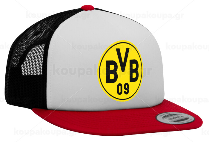 BVB Μπορούσια Ντόρτμουντ , Καπέλο Ενηλίκων Foam Flat Snapback με Δίχτυ Κόκκινο-Λευκό-Μαύρο (POLYESTER, ΕΝΗΛΙΚΩΝ, UNISEX, ONE SIZE)
