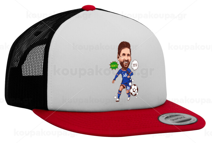 Lionel Messi drawing, Καπέλο Ενηλίκων Foam Flat Snapback με Δίχτυ Κόκκινο-Λευκό-Μαύρο (POLYESTER, ΕΝΗΛΙΚΩΝ, UNISEX, ONE SIZE)