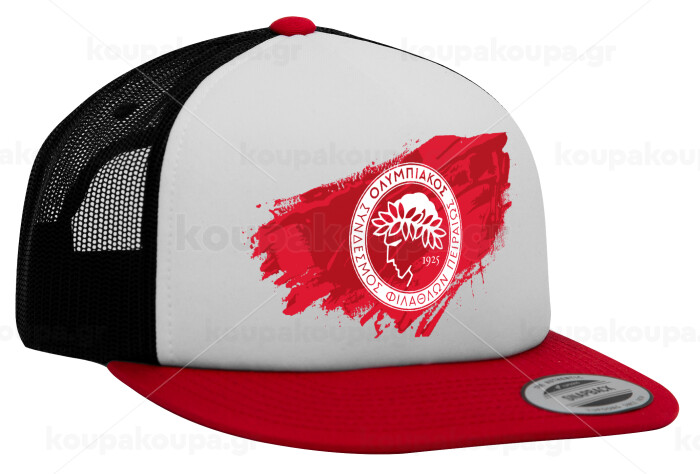 Olympiacos F.C., Καπέλο Ενηλίκων Foam Flat Snapback με Δίχτυ Κόκκινο-Λευκό-Μαύρο (POLYESTER, ΕΝΗΛΙΚΩΝ, UNISEX, ONE SIZE)