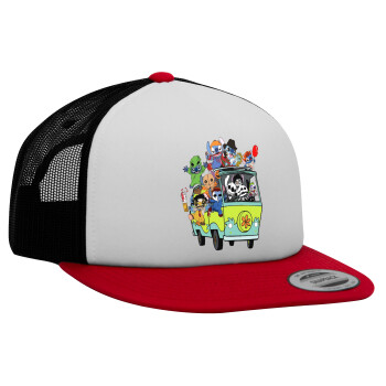 Stitch Halloween scooby car, Καπέλο Ενηλίκων Foam Flat Snapback με Δίχτυ Κόκκινο-Λευκό-Μαύρο (POLYESTER, ΕΝΗΛΙΚΩΝ, UNISEX, ONE SIZE)