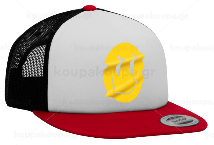 Smile avatar distrorted, Καπέλο Ενηλίκων Foam Flat Snapback με Δίχτυ Κόκκινο-Λευκό-Μαύρο (POLYESTER, ΕΝΗΛΙΚΩΝ, UNISEX, ONE SIZE)