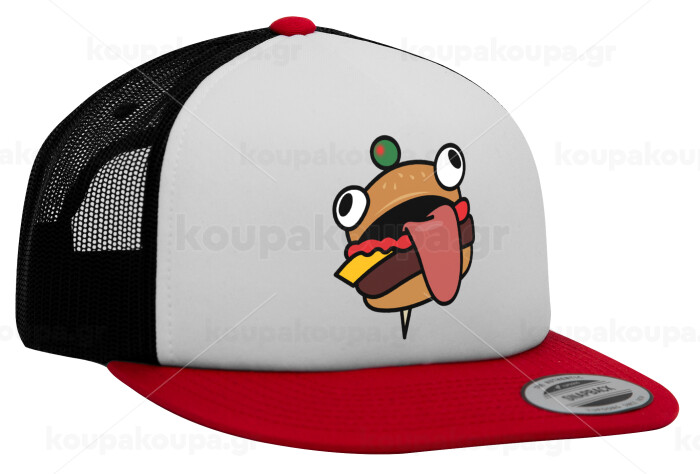 Fortnite Durr Burger, Καπέλο Ενηλίκων Foam Flat Snapback με Δίχτυ Κόκκινο-Λευκό-Μαύρο (POLYESTER, ΕΝΗΛΙΚΩΝ, UNISEX, ONE SIZE)