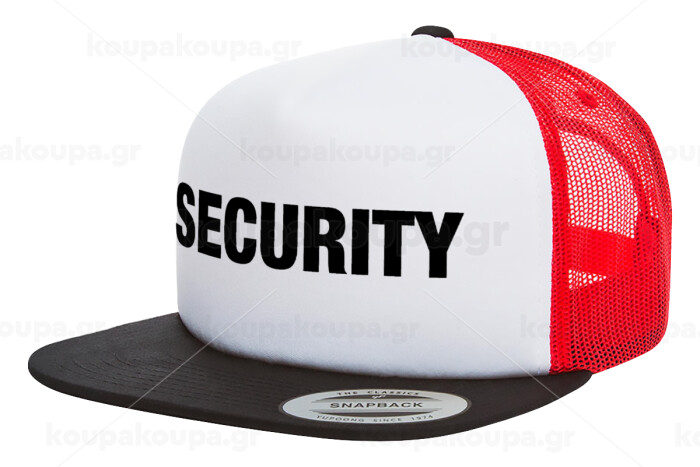 Security, Καπέλο Ενηλίκων Foam Flat Snapback με Δίχτυ Μαύρο-Λευκό-Κόκκινο (POLYESTER, ΕΝΗΛΙΚΩΝ, UNISEX, ONE SIZE)