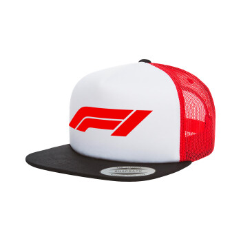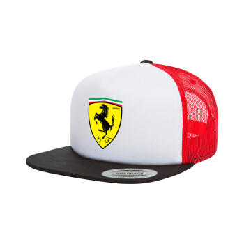 Porsche, Καπέλο Ενηλίκων Foam Flat Snapback με Δίχτυ Μαύρο-Λευκό-Κόκκινο (POLYESTER, ΕΝΗΛΙΚΩΝ, UNISEX, ONE SIZE)