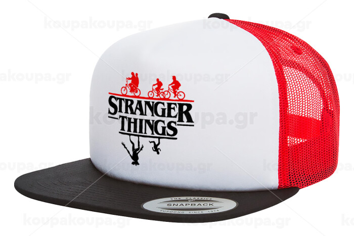 Stranger Things upside down, Καπέλο Ενηλίκων Foam Flat Snapback με Δίχτυ Μαύρο-Λευκό-Κόκκινο (POLYESTER, ΕΝΗΛΙΚΩΝ, UNISEX, ONE SIZE)