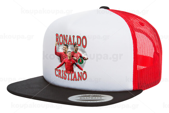 Κριστιάνο Ρονάλντο, Καπέλο Ενηλίκων Foam Flat Snapback με Δίχτυ Μαύρο-Λευκό-Κόκκινο (POLYESTER, ΕΝΗΛΙΚΩΝ, UNISEX, ONE SIZE)