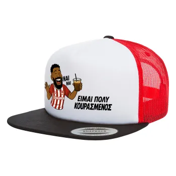 Ροντινέι, "ΠΟΛΥ ΚΟΥΡΑΣΜΕΝΟΣ", Καπέλο Ενηλίκων Foam Flat Snapback με Δίχτυ Μαύρο-Λευκό-Κόκκινο (POLYESTER, ΕΝΗΛΙΚΩΝ, UNISEX, ONE SIZE)