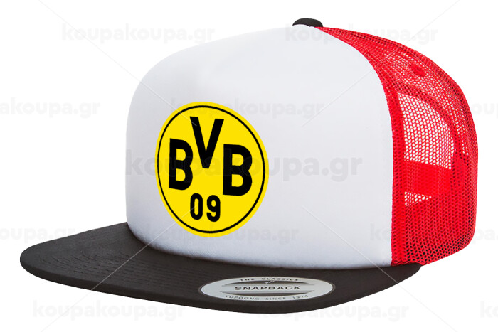 BVB Μπορούσια Ντόρτμουντ , Καπέλο Ενηλίκων Foam Flat Snapback με Δίχτυ Μαύρο-Λευκό-Κόκκινο (POLYESTER, ΕΝΗΛΙΚΩΝ, UNISEX, ONE SIZE)