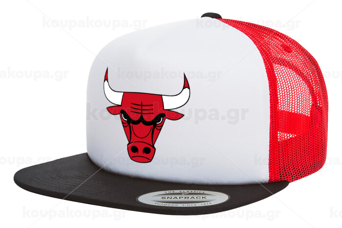 Chicago Bulls, Καπέλο Ενηλίκων Foam Flat Snapback με Δίχτυ Μαύρο-Λευκό-Κόκκινο (POLYESTER, ΕΝΗΛΙΚΩΝ, UNISEX, ONE SIZE)