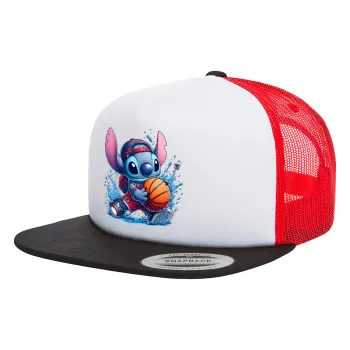 Stitch Basketball, Καπέλο Ενηλίκων Foam Flat Snapback με Δίχτυ Μαύρο-Λευκό-Κόκκινο (POLYESTER, ΕΝΗΛΙΚΩΝ, UNISEX, ONE SIZE)