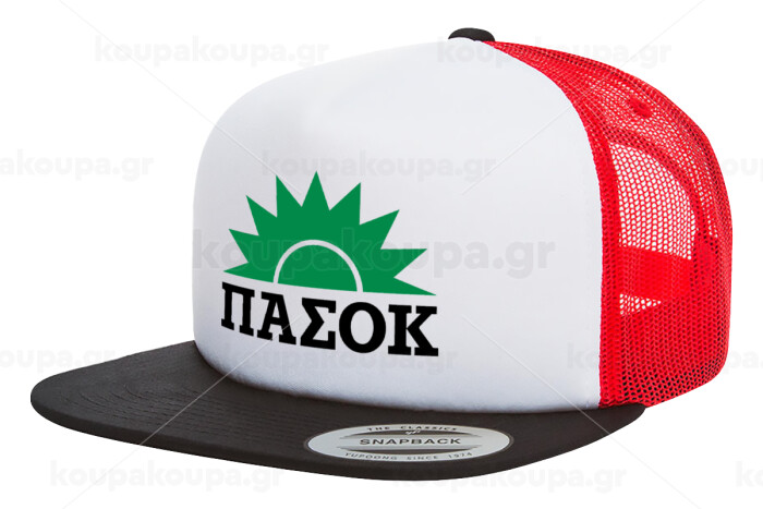 ΠΑΣΟΚ, Καπέλο Ενηλίκων Foam Flat Snapback με Δίχτυ Μαύρο-Λευκό-Κόκκινο (POLYESTER, ΕΝΗΛΙΚΩΝ, UNISEX, ONE SIZE)