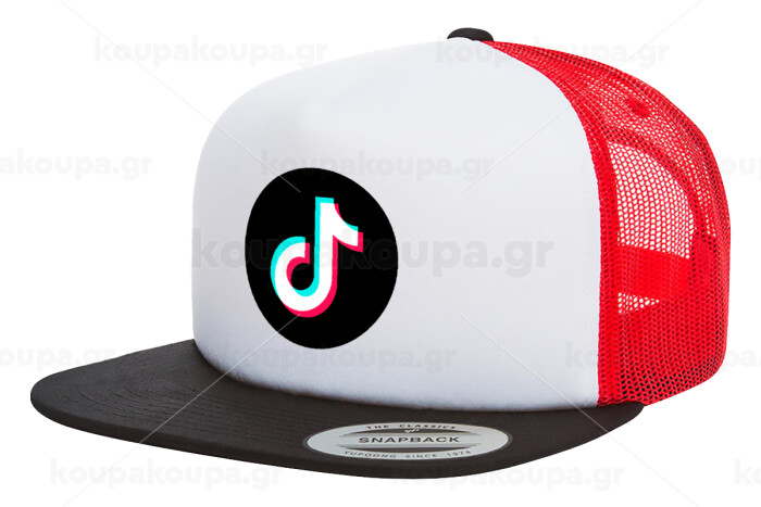 TikTok, Καπέλο Ενηλίκων Foam Flat Snapback με Δίχτυ Μαύρο-Λευκό-Κόκκινο (POLYESTER, ΕΝΗΛΙΚΩΝ, UNISEX, ONE SIZE)