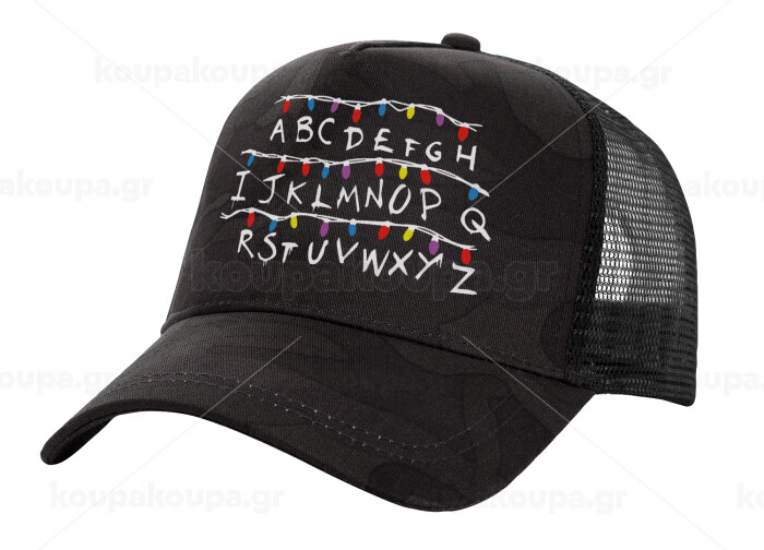 Stranger Things ABC, Καπέλο Ενηλίκων Structured Trucker, με Δίχτυ, (παραλλαγή) Army σκούρο (100% ΒΑΜΒΑΚΕΡΟ, ΕΝΗΛΙΚΩΝ, UNISEX, ONE SIZE)