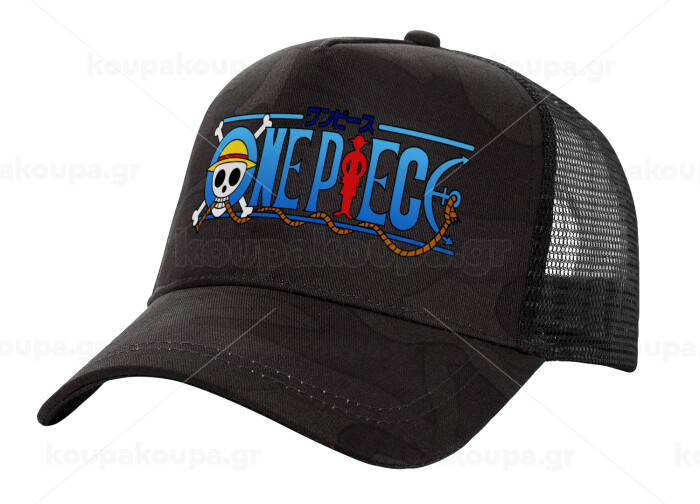 Onepiece logo, Καπέλο Ενηλίκων Structured Trucker, με Δίχτυ, (παραλλαγή) Army σκούρο (100% ΒΑΜΒΑΚΕΡΟ, ΕΝΗΛΙΚΩΝ, UNISEX, ONE SIZE)