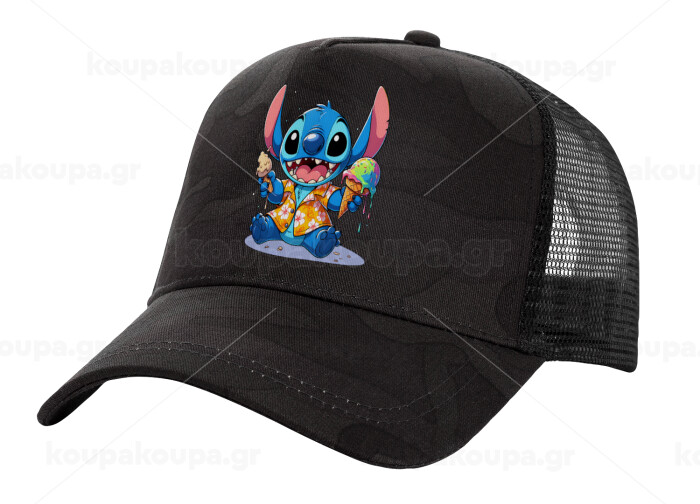 Stitch Ice cream, Καπέλο Ενηλίκων Structured Trucker, με Δίχτυ, (παραλλαγή) Army σκούρο (100% ΒΑΜΒΑΚΕΡΟ, ΕΝΗΛΙΚΩΝ, UNISEX, ONE SIZE)