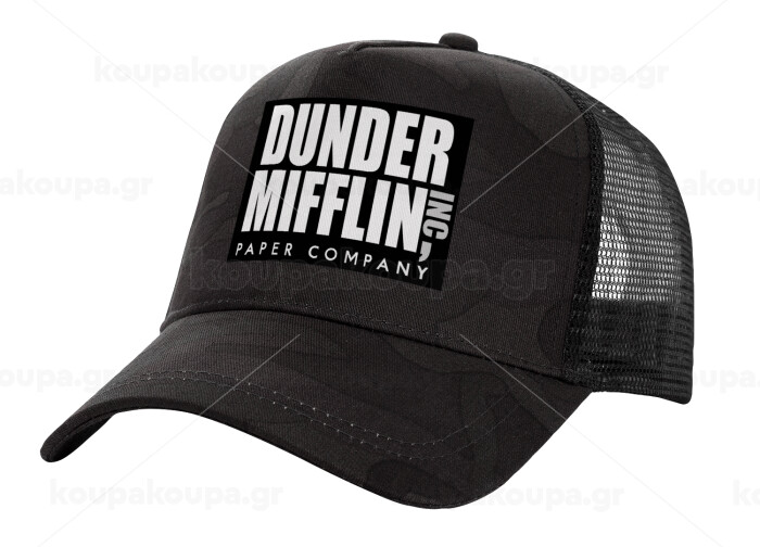 Dunder Mifflin, Inc Paper Company, Καπέλο Ενηλίκων Structured Trucker, με Δίχτυ, (παραλλαγή) Army σκούρο (100% ΒΑΜΒΑΚΕΡΟ, ΕΝΗΛΙΚΩΝ, UNISEX, ONE SIZE)