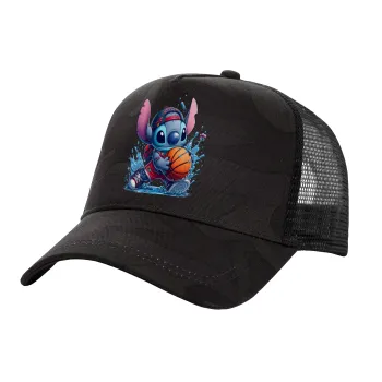 Stitch Basketball, Καπέλο Ενηλίκων Structured Trucker, με Δίχτυ, (παραλλαγή) Army σκούρο (100% ΒΑΜΒΑΚΕΡΟ, ΕΝΗΛΙΚΩΝ, UNISEX, ONE SIZE)