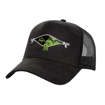Grinch, eww people, Καπέλο Ενηλίκων Structured Trucker, με Δίχτυ, (παραλλαγή) Army σκούρο (100% ΒΑΜΒΑΚΕΡΟ, ΕΝΗΛΙΚΩΝ, UNISEX, ONE SIZE)