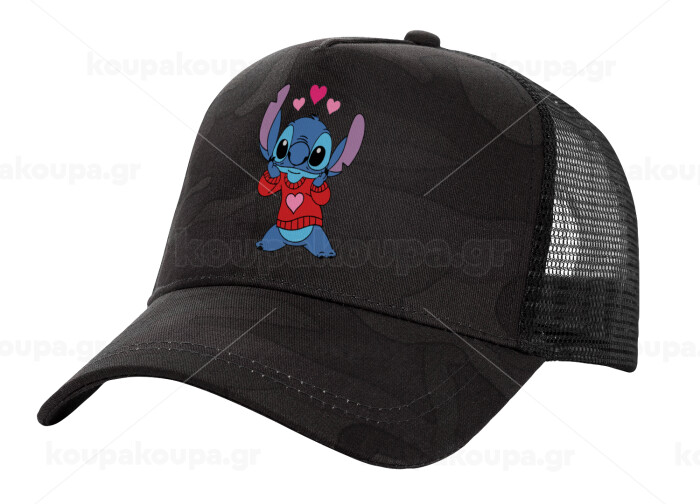 Stitch heart, Καπέλο Ενηλίκων Structured Trucker, με Δίχτυ, (παραλλαγή) Army σκούρο (100% ΒΑΜΒΑΚΕΡΟ, ΕΝΗΛΙΚΩΝ, UNISEX, ONE SIZE)