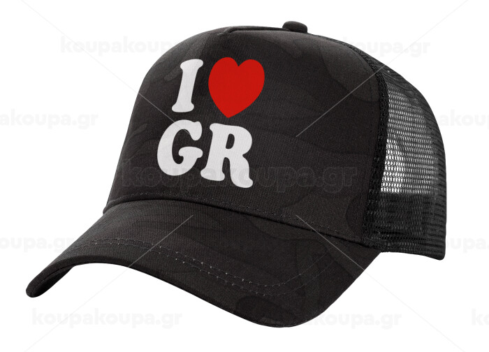 I Love GR, Καπέλο Ενηλίκων Structured Trucker, με Δίχτυ, (παραλλαγή) Army σκούρο (100% ΒΑΜΒΑΚΕΡΟ, ΕΝΗΛΙΚΩΝ, UNISEX, ONE SIZE)