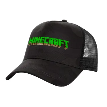 Minecraft logo green, Καπέλο Ενηλίκων Structured Trucker, με Δίχτυ, (παραλλαγή) Army σκούρο (100% ΒΑΜΒΑΚΕΡΟ, ΕΝΗΛΙΚΩΝ, UNISEX, ONE SIZE)